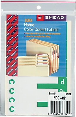 Smead Labels - Discount Prices on All Smead Labels Smead NCC Name Labels are standard for alphabetic color coding in both top tab and end tab filing systems, these wrap-around style labels can be read from both sides. Thirteen colors code all 26 letters; first half of alphabet has colored letter against white and second half has white letter against colored background.