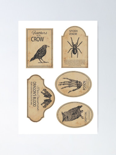 Halloween Potion Bottle Labels Sticker Pack (Separated) - Witches / Poison / Witchcraft / Wicca / Goth Stickers | Poster